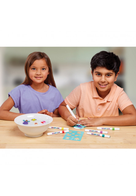 Vytvorte si vlastné magické vodné výtvory s touto jedinečnou výrobnou aktivitou. Je to tak zábavné a jednoduché! Pomocou šablón alebo vlastnej fantázie vyfarbite keramickú lyžičku, potom ju jednoducho ponorte do vody a sledujte, ako vznikajú kúzla. Táto zábavná senzorická hračka tiež podporuje koordináciu rúk a očí a podnecuje tvorivosť a predstavivosť. Ohromte svojich priateľov a hrajte sa so svojimi výtvormi. Magické, zábavné a náročné. Tvorte a vymýšľajte! Ideálne pre deti, ktoré majú rady kúzla a umenie!