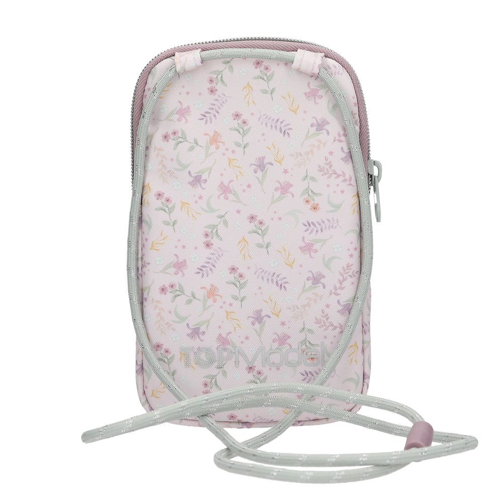 Vrecko na mobil s potlačou a roztomilými detailami, so skvelou nášivkou Top Model a strieborným zipsom, je na šnúrku na krk. Vonkajší materiál tejto tašky na mobil s dvomi priehradkami a zipsom je z polyesteru. Rozmery: 19x11,5x2cm