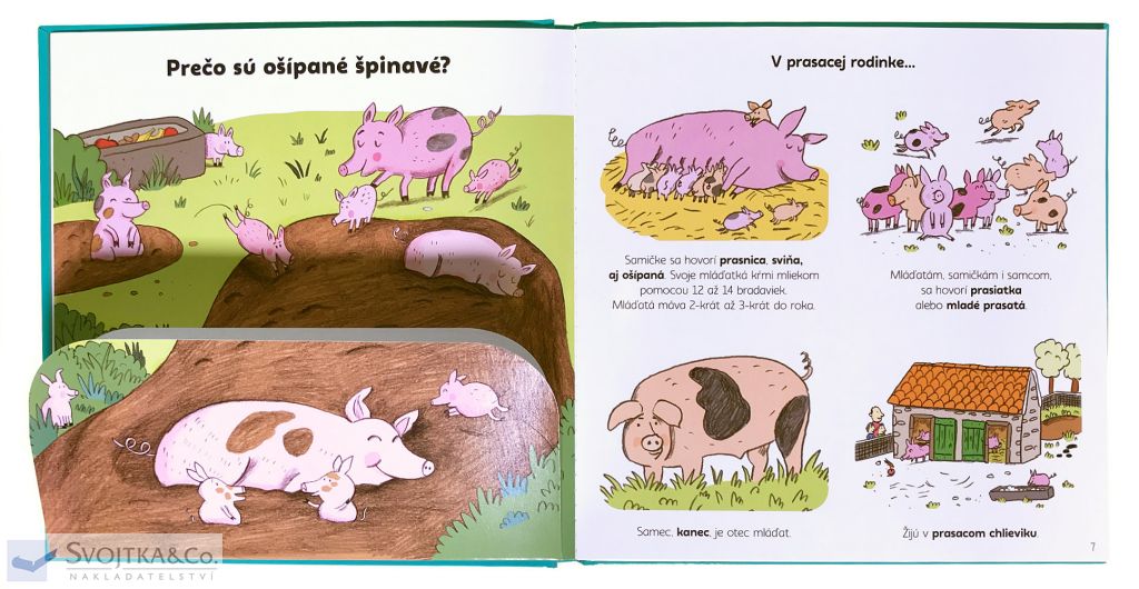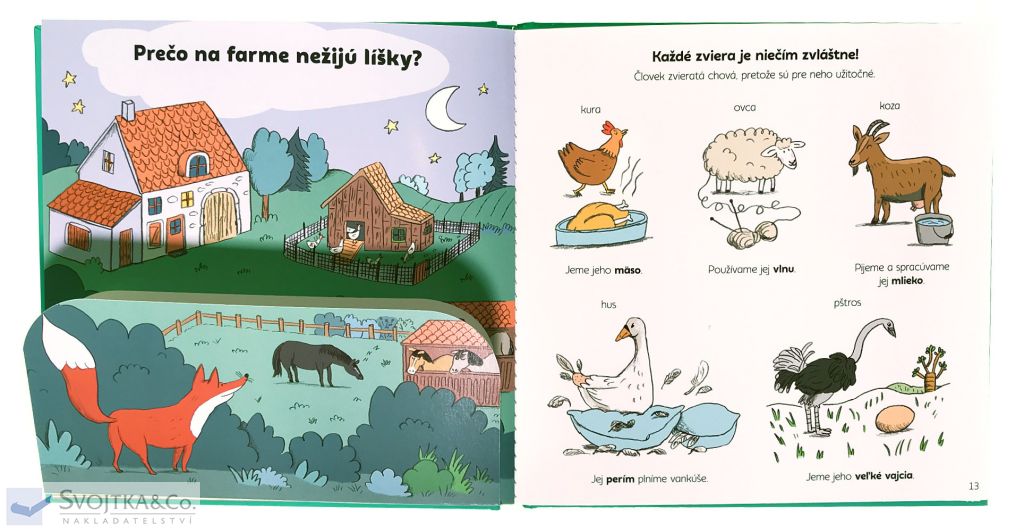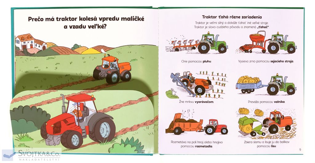 Zaujíma ťa, čo sa deje na farme? Prečo rastliny na poliach rastú v riadkoch, ako sa robia balíky slamy, alebo prečo nie sú kuriatka vo všetkých vajciach? Odpovede na tieto a ďalšie otázky nájdeš vnútri knihy. Na každej dvojstrane je veľké odklápacie okienko, pod ktorým sa schováva odpoveď. Ďalšia strana obsahuje doplňujúce informácie pre malých zvedavcov, ktorí chcú vedieť vždy o trochu viac. Odpovede sú podané tak, aby im deti porozumeli. Zistite, čo všetko so svojimi malými zvedavcami môžete objaviť na poli alebo na statku, a vrhnite sa do preskúmavania!