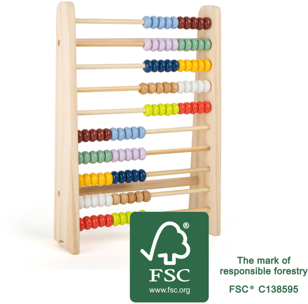Večná klasika, ktorá učí ľudí základy aritmetiky už celé generácie. Toto klasické posuvné počítadlo vyrobené z robustného dreva umožňuje malým nadšencom precvičovať matematiku a učí ich číselné pomery. Jasne farebné korálky v desiatich radoch sa dajú posúvať dopredu a dozadu. Skvelý darček pre všetkých (začínajúcich) školákov! Hlavné vlastnosti: 10 radov po 10 korálkachVyrobené zo 100 % dreva FSC® Značka a certifikát FSC® (Forest Stewardship Council) zaručuje, že drevo, z ktorého bol výrobok vyrobený, nebolo vyťažené nelegálne a pochádza z lesov obhospodarovaných šetrným či prírode blízkym spôsobom, v ktorom sú dodržiavané prísne environmentálne a sociálne požiadavky. Značka FSC® na výrobku znamená, že svojim nákupom pomáhate chrániť lesy a podporujete šetrné, zodpovedné či prírode blízke hospodárenie, vďaka ktorému sú naše lesy stabilnejšie, zdravšie, majú prirodzenú druhovú skladbu a lepšie odolávajú negatívnym následkom klimatických zmien.