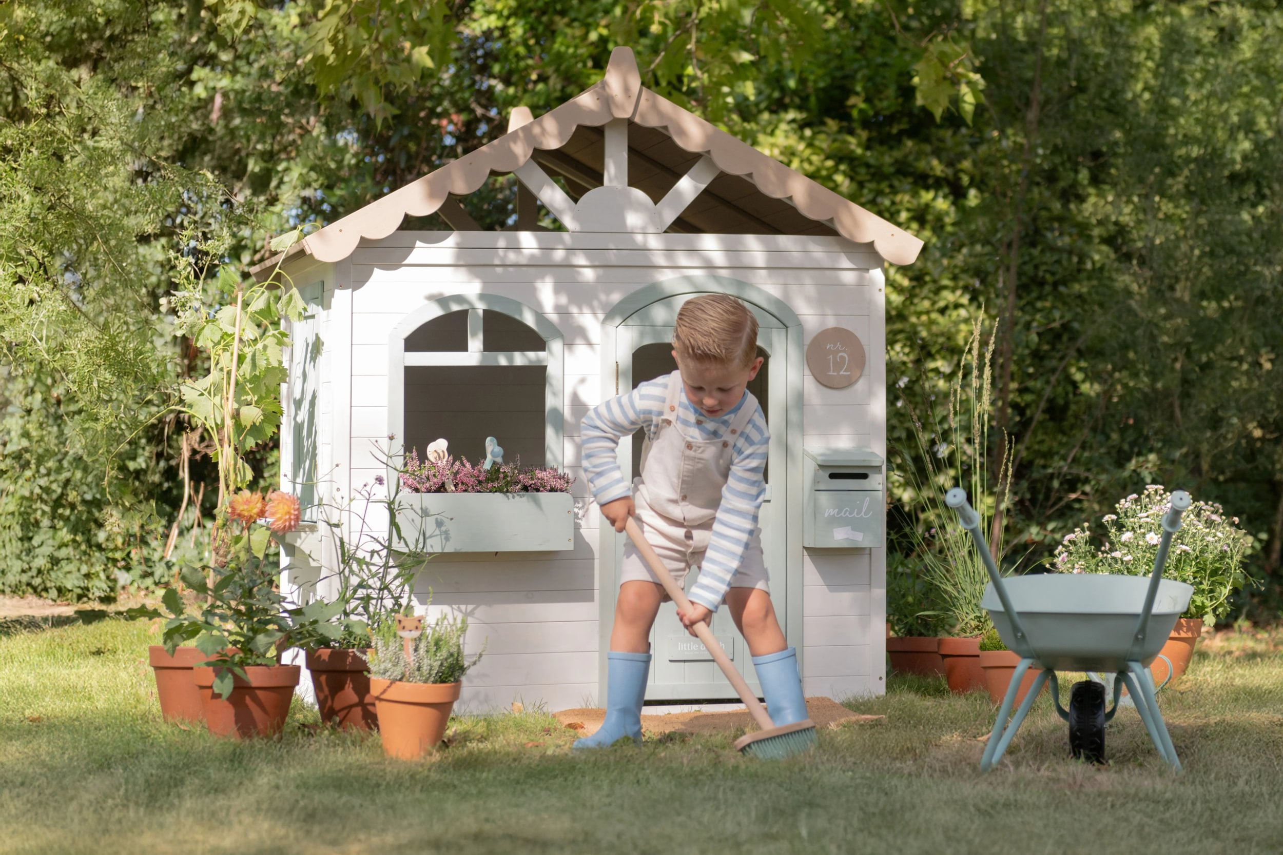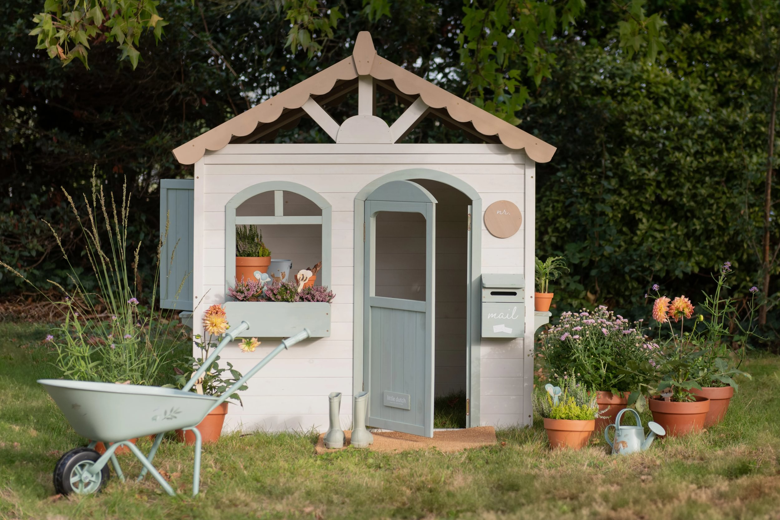 Drevený záhradný domček Little Dutch vytvorí na vašej záhrade útulné miesto, kde si deti môžu vytvoriť vlastný „malý domov“ a nechať naplno pracovať fantázii. Otvorte okenice, dajte kvety na parapet a nezabudnite skontrolovať schránku – napríklad práve prišla pošta! Domček je ideálny pre hry na domácnosť, obchod, kaviareň alebo len na pokojné posedenie a rozprávanie s kamarátmi. Vďaka dverám a oknám sa do neho deti ľahko dostanú a otvorený, prístupný dizajn láka k spoločnej hre vonku.