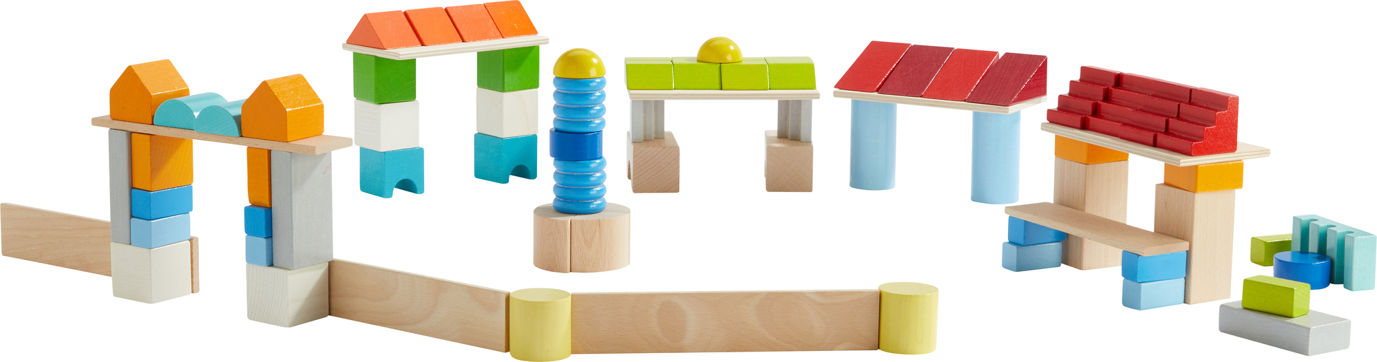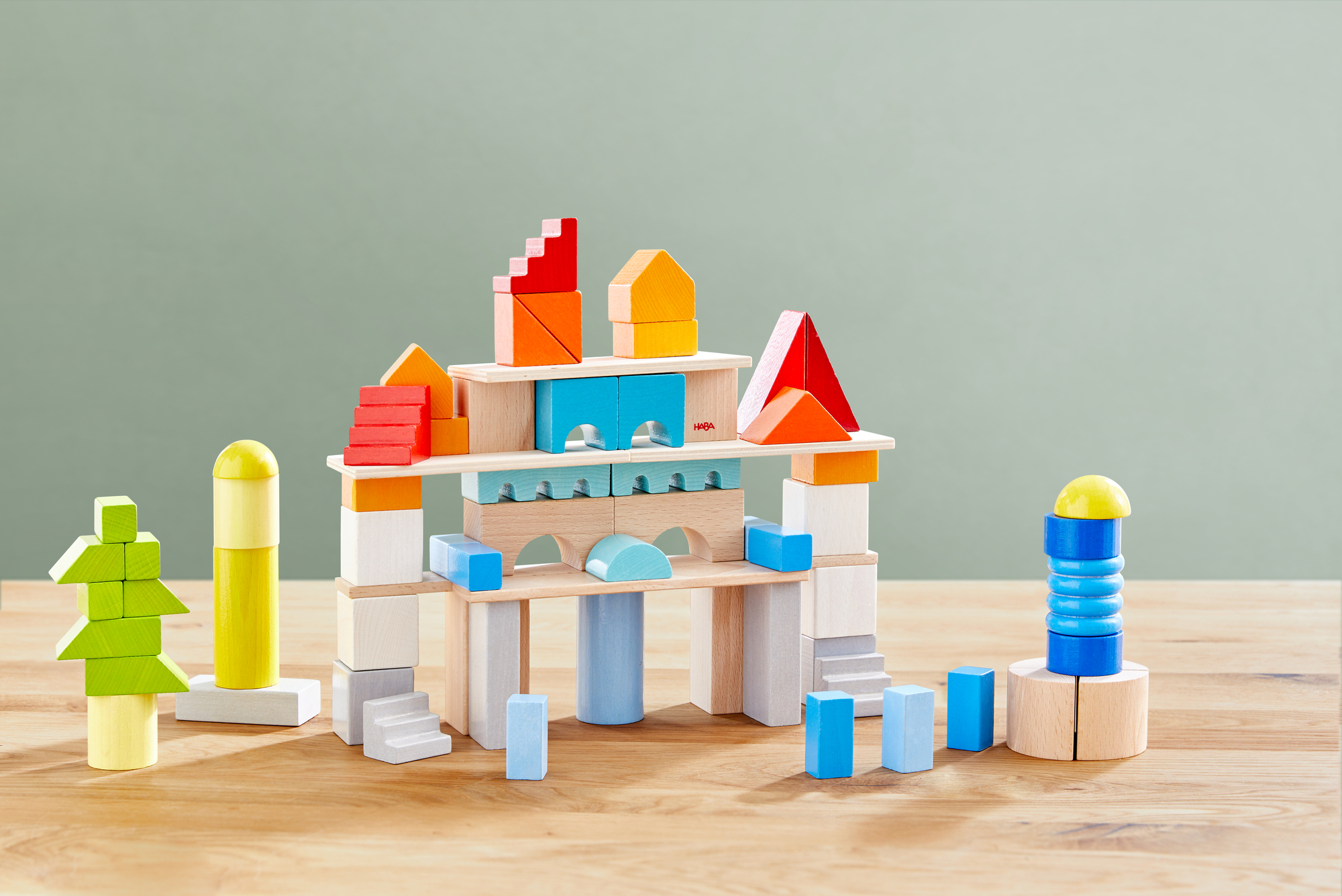 Malí majstri skladania si môžu postaviť pôsobivé umelecké dielka plné tvarov a žiarivých farieb. So stavebnými kockami Haba nemá nuda žiadnu šancu! Zároveň si deti prirodzene rozvíjajú sústredenie a trpezlivosť.