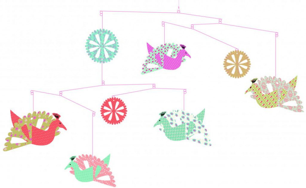 Perfektný doplnok detskej izbičky: farebné pávy v pastelových odtieňoch. Ramená kolotoča je možné na...zobrazit více