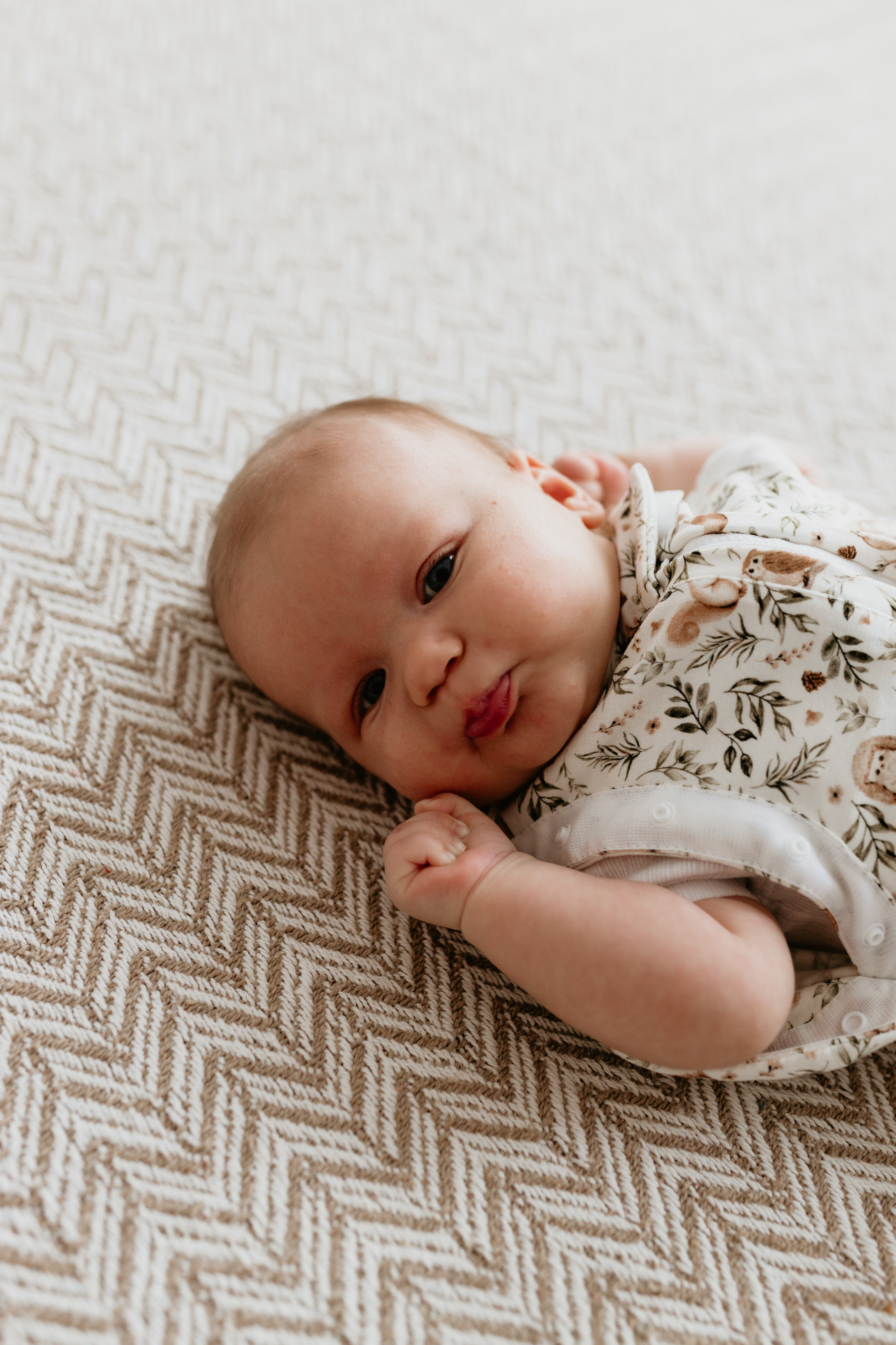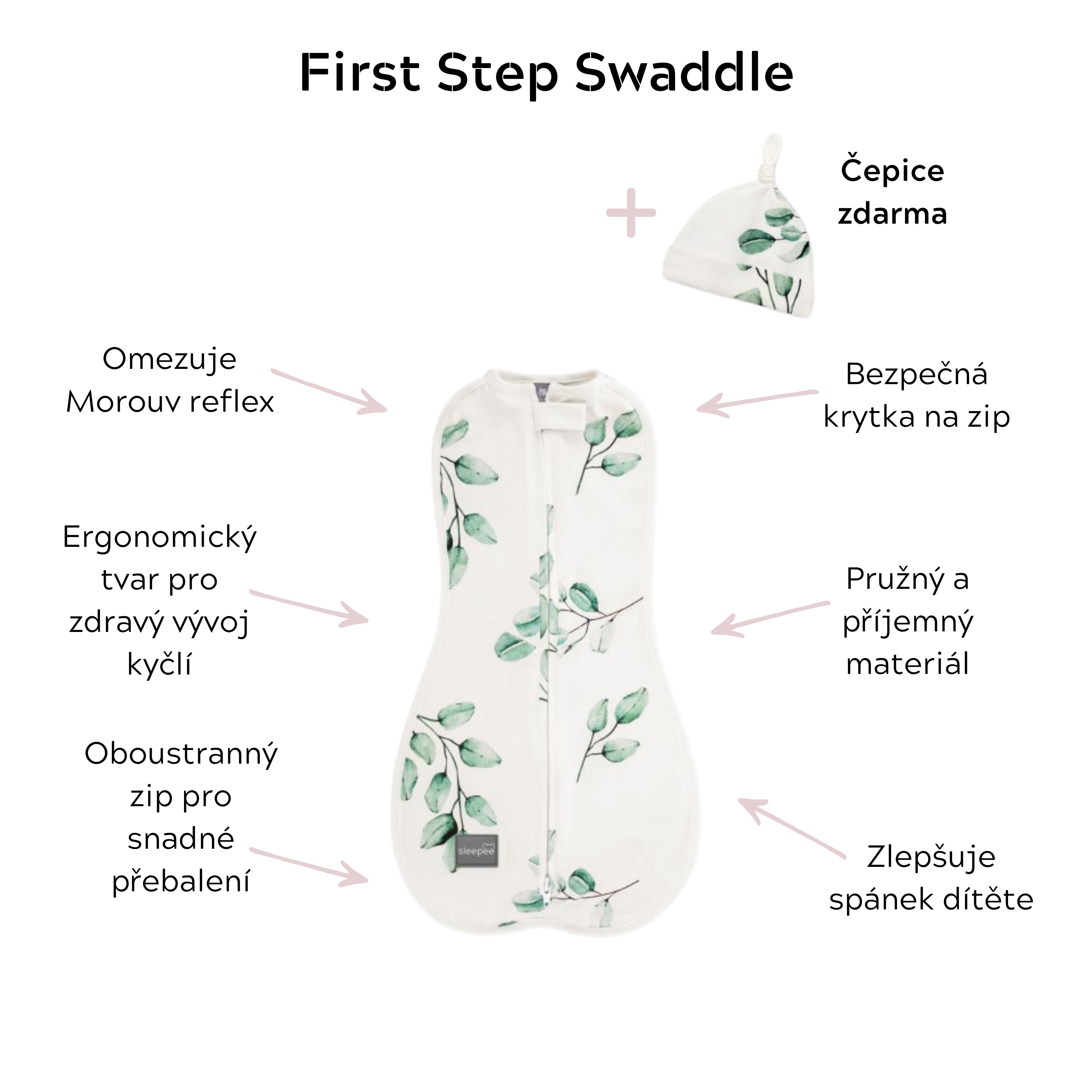 Zavinovačka First Step Swaddle Ivory Forest pro miminka od narození je vyrobená z bavlny nejvyšší kvality a obsahuje 8% elastanu. Miminko je díky tomu příjemně zavinuté, ale zároveň má možnost hýbat nožičkami, což je zásadní pro správný vývoj kyčlí.