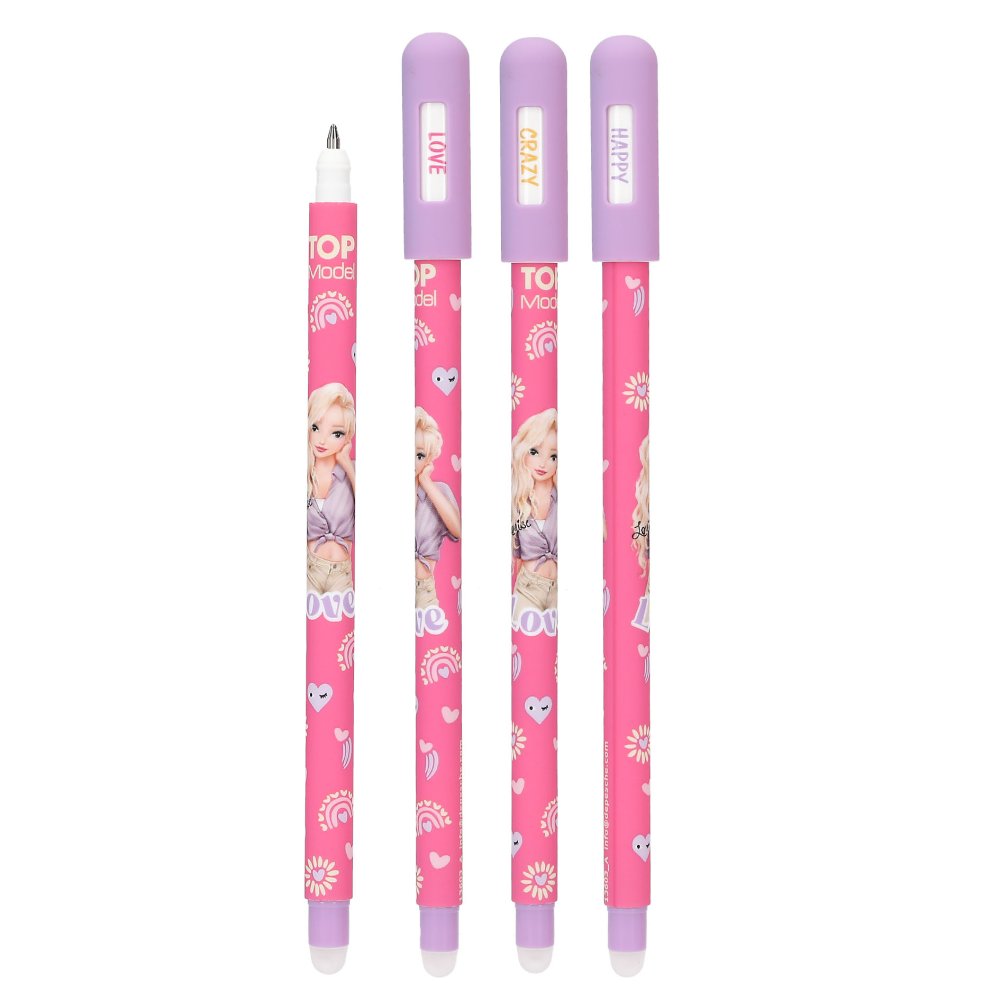 Napíšte a jednoducho zmažte! Toto skvelé pero TOPModelv štýlových farbách s potlačou a vrchnákom, na ktorom si viete nastaviť aktuálnu náladu: love, crazy, happy, má modrú náplň.