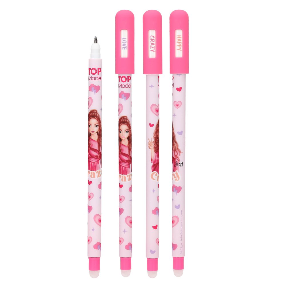 Napíšte a jednoducho zmažte! Toto skvelé pero TOPModelv štýlových farbách s potlačou a vrchnákom, na ktorom si viete nastaviť aktuálnu náladu: love, crazy, happy, má modrú náplň.