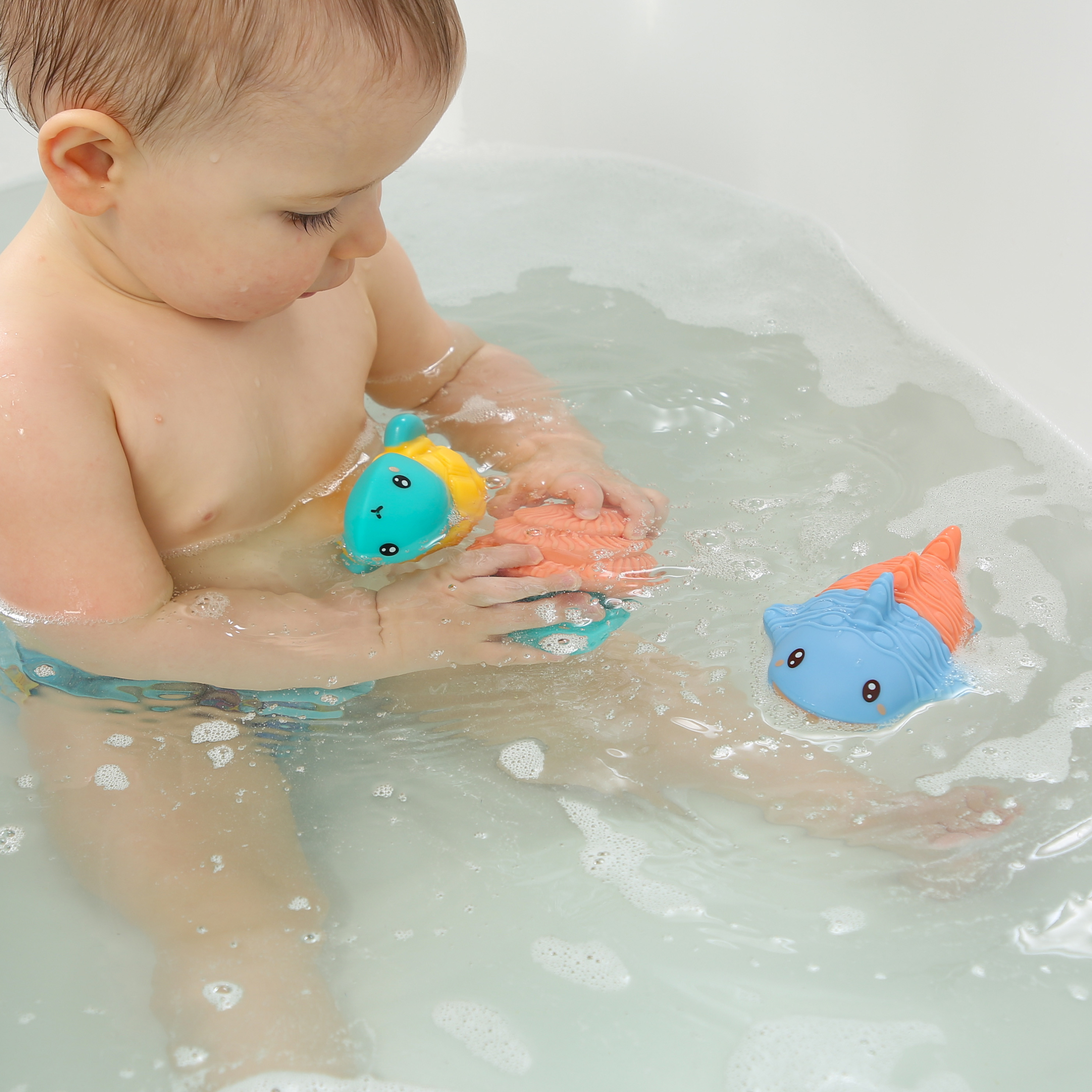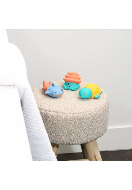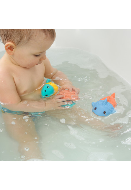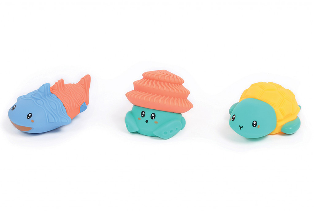 Tři dvoudílné šroubovací hračky v podobě žraloka, želvy a kraba zajistí vašemu dítěti spoustu zábavy při koupání. Horní a spodní díly hraček lze spolu libovolně kombinovat a vytvářet tak pokaždé jiné figurky. Při zmáčknutí hračky stříkají vodu pro ještě více zábavy ve vaně. Dvoudílné provedení umožňuje hračky po skončení koupele rozšroubovat, důkladně opláchnout a nechat zcela vyschnout.
